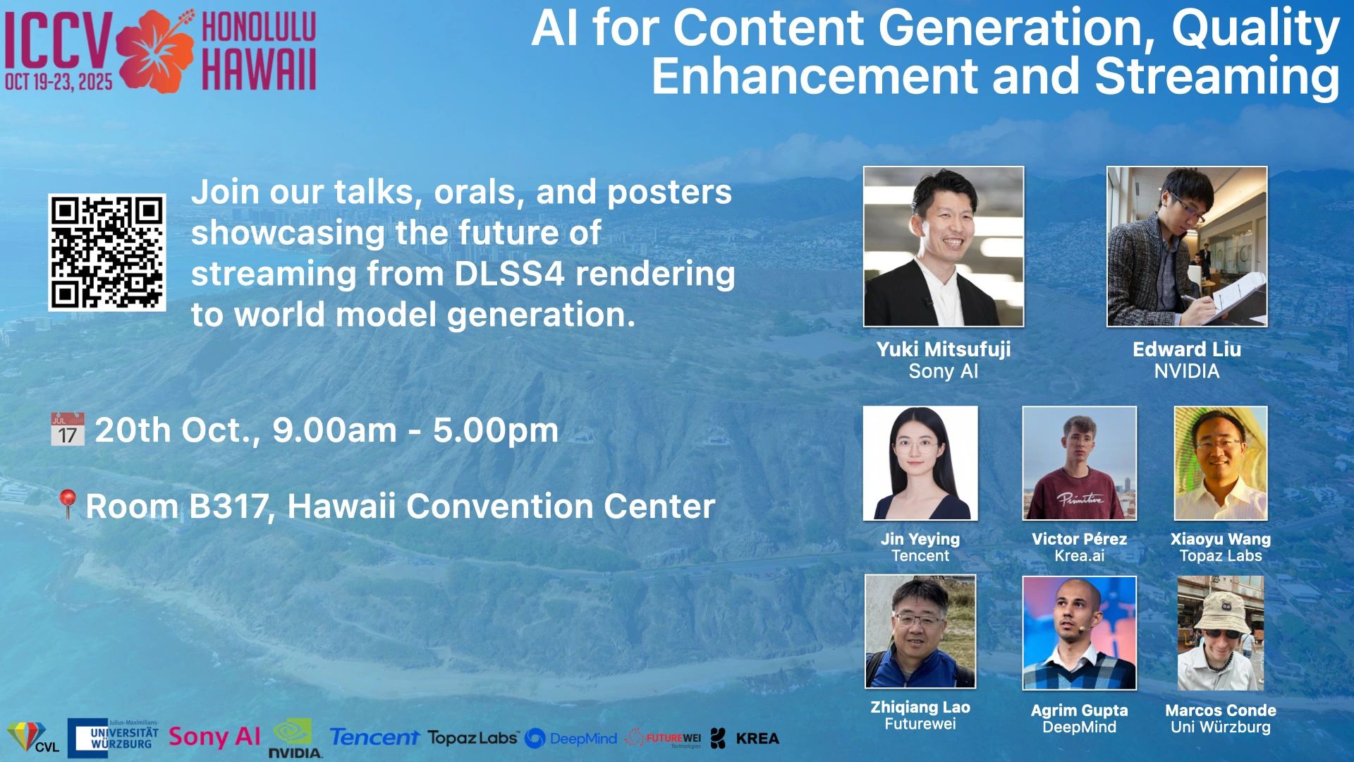 “Advances in Audiovisual Generative Models”, ICCV Workshop on AI for Content Generation, Quality Enhancement and Streaming (ICCV AIGENS), Oct. 2025 [URL]