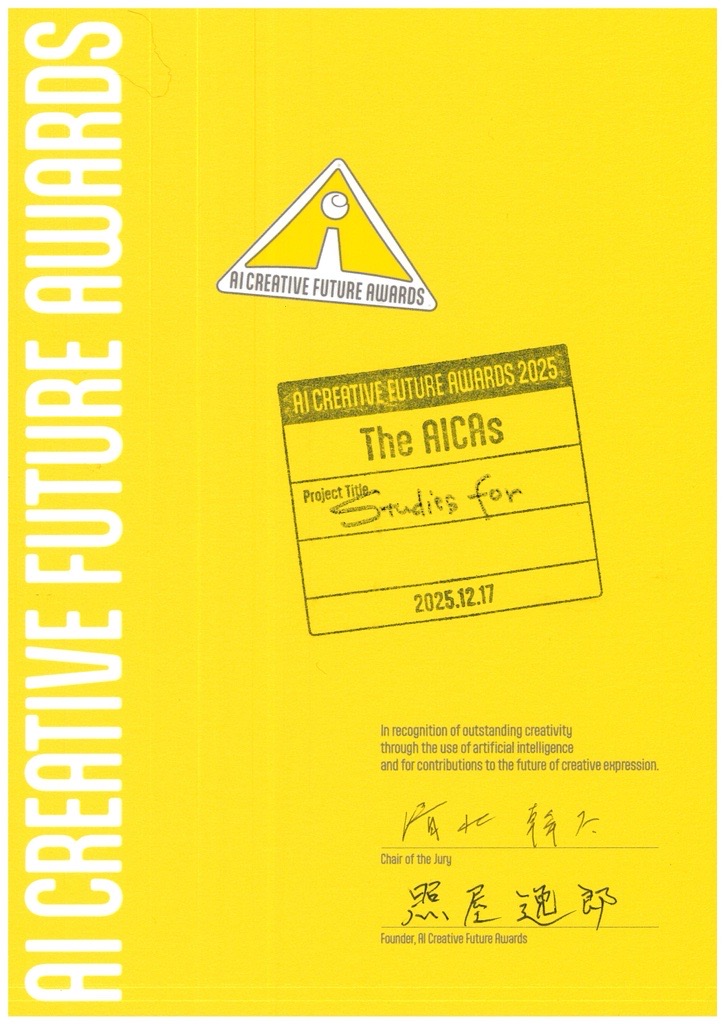 AICA Award for the sound artwork with Evala “Studies for,” AI Creative Future Awards (AICA), 2025 [URL][certificate]